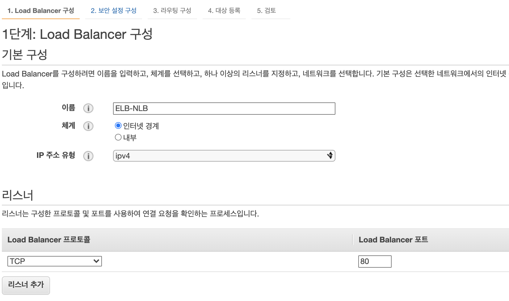 (선택) : 인터넷경계(internet-facing) : NLB와 인터넷이 연결되어 있습니다.