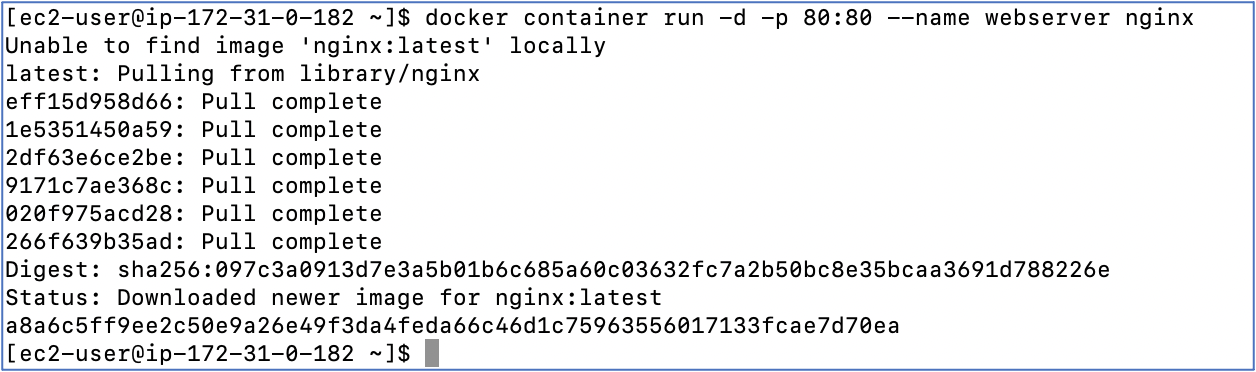 $ "docker container run -d -p 80:80 --name webserver nginx"