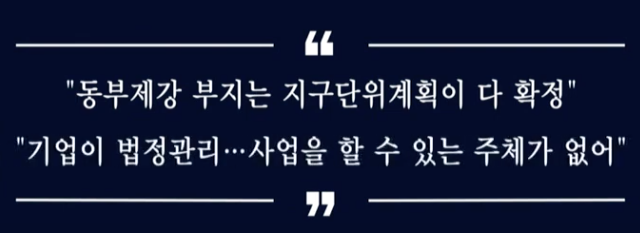 동부제강 부지를 개발할 기업이 법정관리에 들어갔다고 합니다. 어이쿠야.