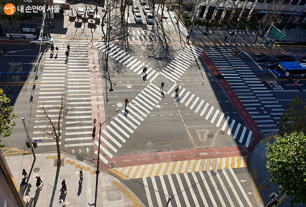 대각선 횡단보도가 보행 시간을 20% 이상 단축시키는 효과가 있다는 조사 결과도 있습니다.