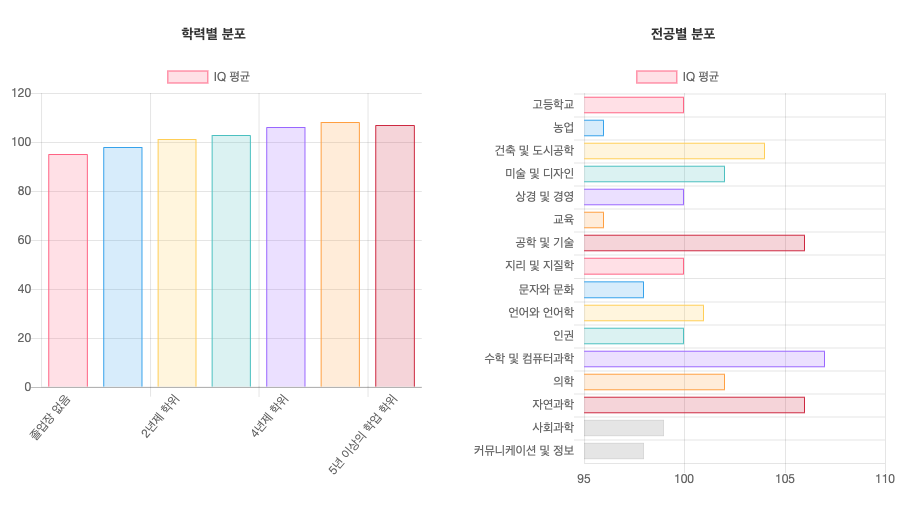 각 IQ 결과에는 여러 변수(인구, 연령 그룹, 학력, 전공 분야)를 기준으로 응시자의 순위를 매기는 개인 통계가 함께 제공됩니다.