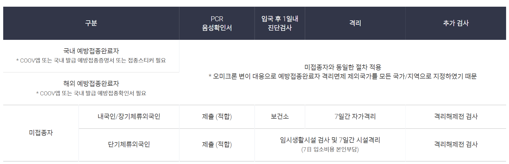 ▸ 백신 접종완료자 입국 전 72시간 내 PCR 음성확인서 제출 시 격리의무 없음