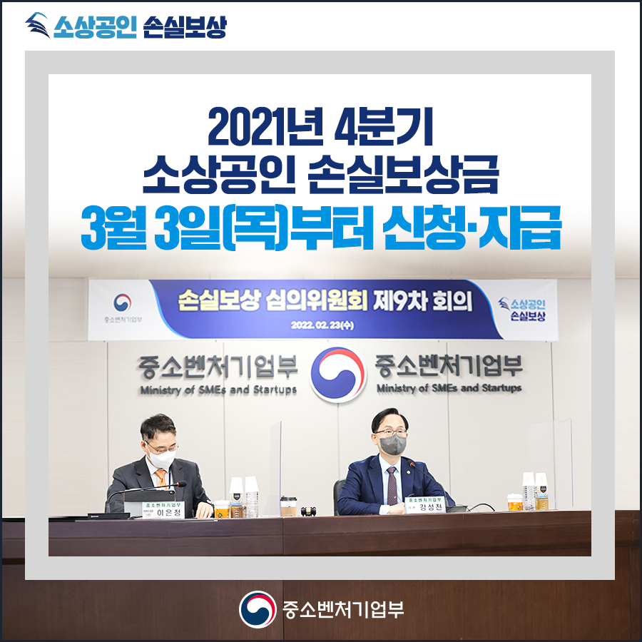 - 중기부, 제9차 손실보상 심의위원회를 개최해 ‘2021년 4분기 손실보상 기준’ 의결(2.23)