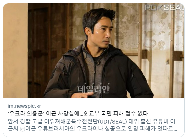 러시아의 우크라이나 침공 전쟁에서 한국에서 용병으로 참전한 용사가 있습니다.