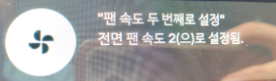 | 팬 속도 두번째로 설정 | 전면 팬 속도 2(으)로 설정됨 (자꾸 1로 처리해서 이 방법으로) |