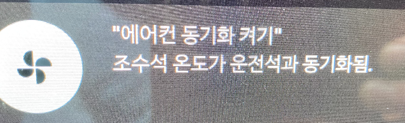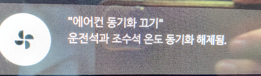 | "에어컨 동기화 끄기" | 운전석과 조수석 온도 동기화 해제됨 (운전석/조수석 듀얼모드 동작 해제) |