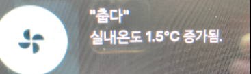 | "춥다" | 실내온도 1.5℃ 증가됨 "추워"는 인식 안됨 |