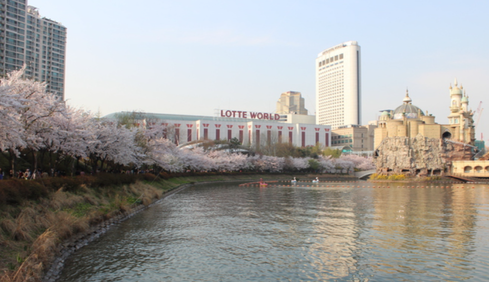 롯데월드타워를 중심으로 벚나무들이 만개해 있어 호수를 둘러싼 벚꽃의 장관도 보실 수 있는 벚꽃 명소입니다.