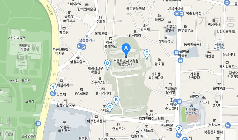 오시는 길 경복궁역 5번출구. 광화문역 2번출구. 안국역 1번출구. 지도를 클릭하시면 상세한 지도정보를 보실 수 있습니다.