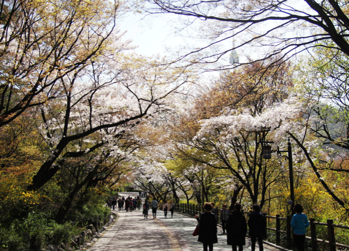 서울의 랜드마크인 남산공원은 전망대, 케이블카 등 즐길 거리도 많은 곳으로 봄이 되면 남측순환로(남산도서관-남산타워)와 북측순환로(국립극장-목면산방)에는 벚꽃터널이 그야말로 장관을 보여주는 '서울 벚꽃 명소'입니다.