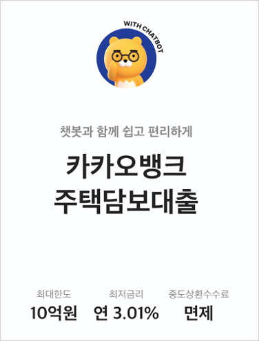 카카오뱅크 주담대 금리는 변동금리 기준 최저 3.01%로 대출, 거치 기간, 상환 방법에 따라 달라진다.
