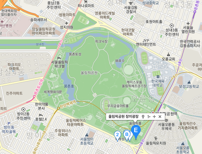 올림픽공원 1주차장, 올림픽공원남2문주차장, 올림픽공원 동2문주차장