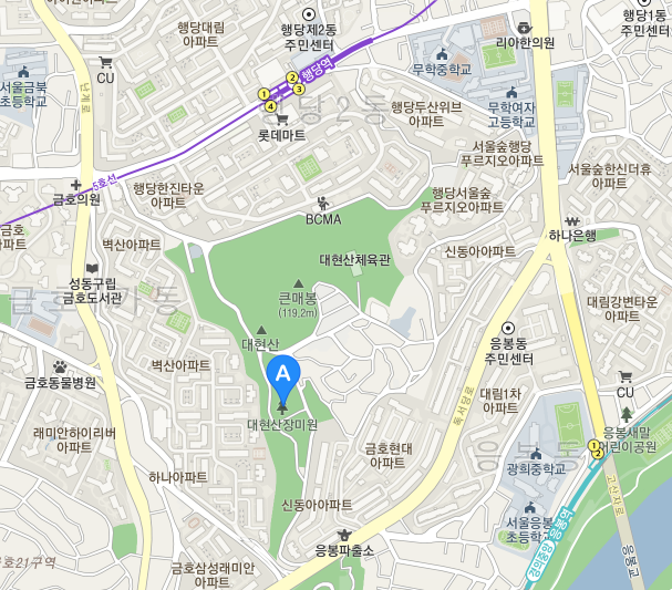 행당역(5) 4번출구 > 구립금봉어린이집 방향, 도보 15분 이내