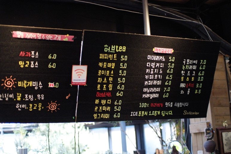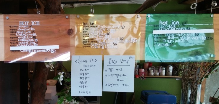 - 메뉴 : 차, 쥬스, 커피, 빙수, 와플, 떡