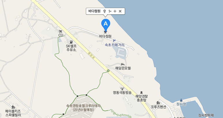내비 "바다정원카페" 강원 고성군 토성면 버리깨길23