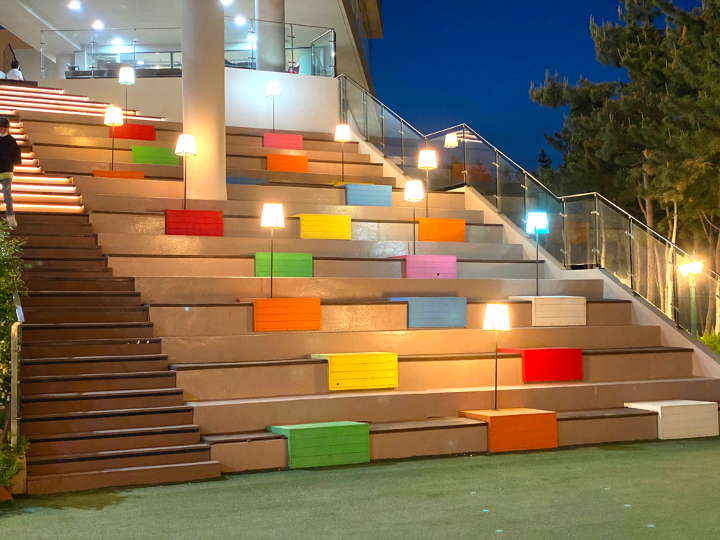 계산에 앉아서 커피 마시며 멍 때리거나 정원과 먼 바다 보기에 좋습니다. 앞에서 버스킹해도 좋겠네요.