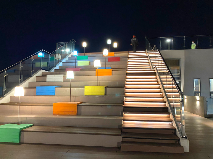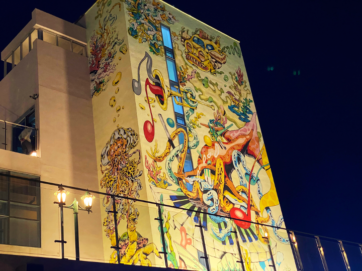 낮보다 밤에 더 선명하고 색감이 살아 있는 벽화