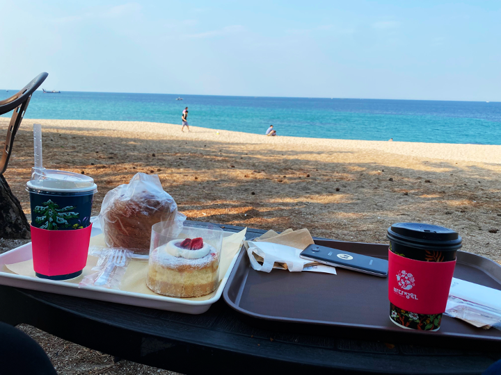 해변에서 커피와 디저트 하면서 수다를 떤다던가