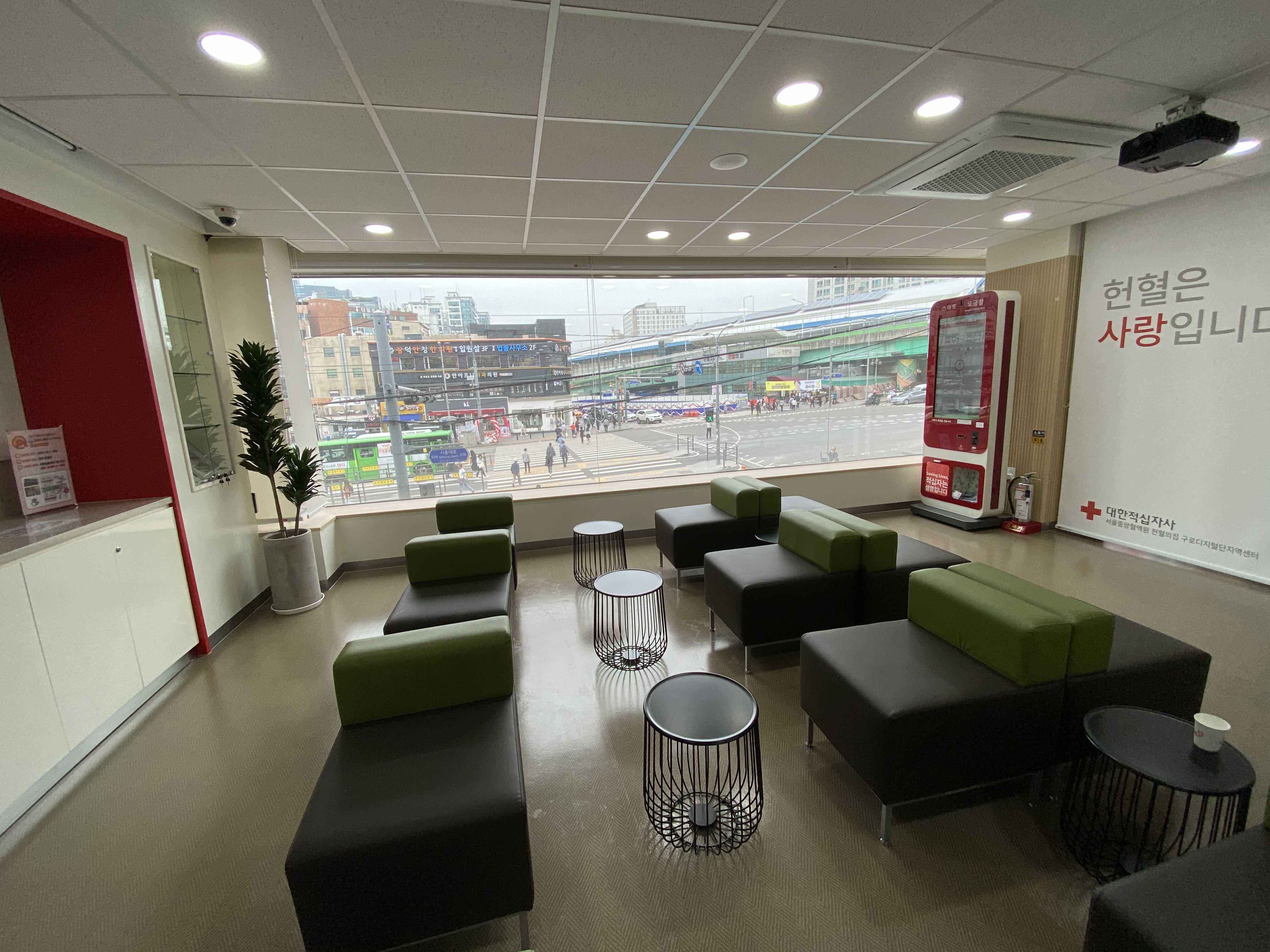 구디 헌혈의 집은 윈도우 뷰가 넓고 차와 사람들이 계속 움직여서 시야가 시원하고 심심하지 않습니다