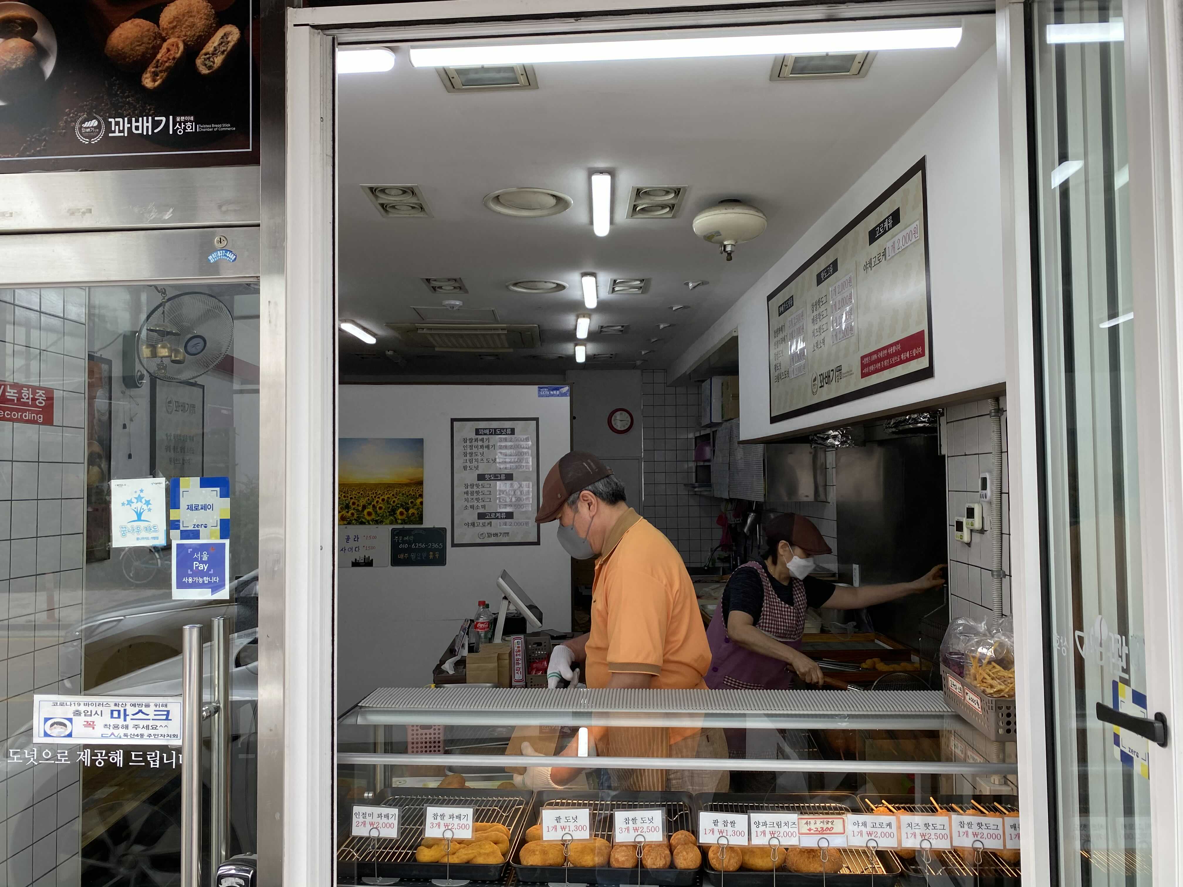 한 분은 열심히 반죽과 카운터를 챙기시고 다른 한 분은 튀기고 포장하시는 일을 해주십니다.