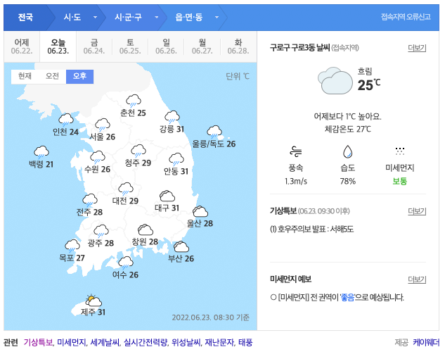 그래서, 전국 장마 시작은 2022년 6월 25일부터로 보고 있습니다.
