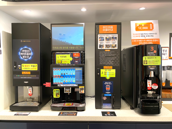 4개의 기기가 있는데요. 기기마다 셀프 주문를 쉽게 할 수 있도록 주문순서가 있습니다.
