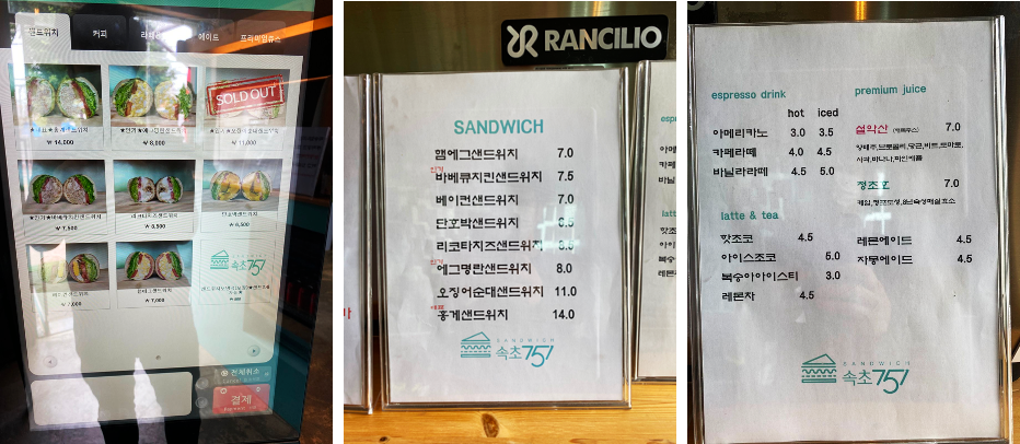 샌드위치 카페라서 커피와 음료도 있습니다.
