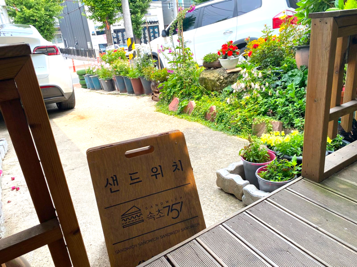 내비 '속초751샌드위치' 로 오시고 주차공간은 2~3대 정도 가능합니다. 주말에는 도로가에도 가능해 보입니다.(다른 차들도 주차되어 있네요)