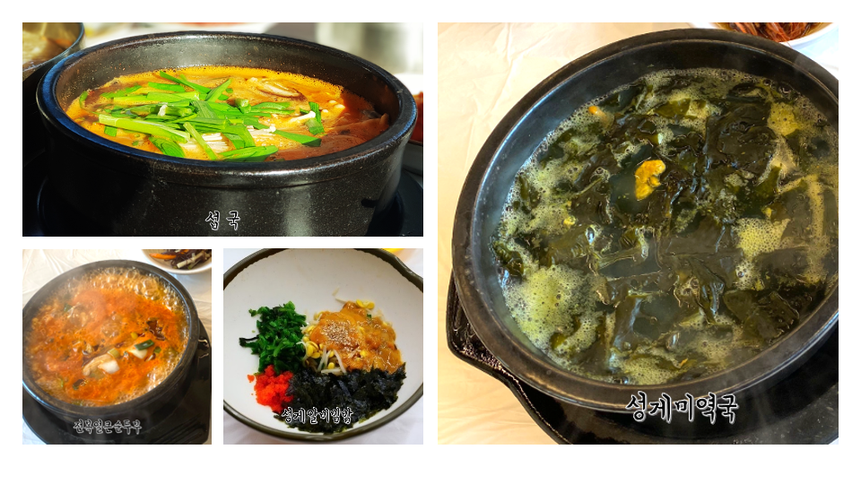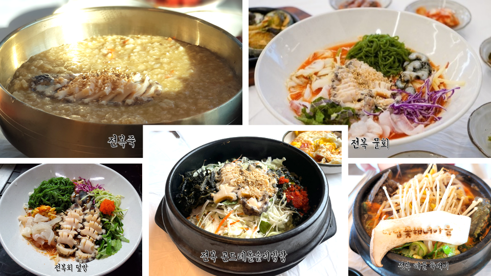 전복해물뚝배기, 성게미역국, 성게알비빔밥, 전복곤드레돌솥비빔밥, 전복물회, 전복회덮밥, 전복죽 등이 땡기신다면 꼭 한 번 다녀와 보세요.