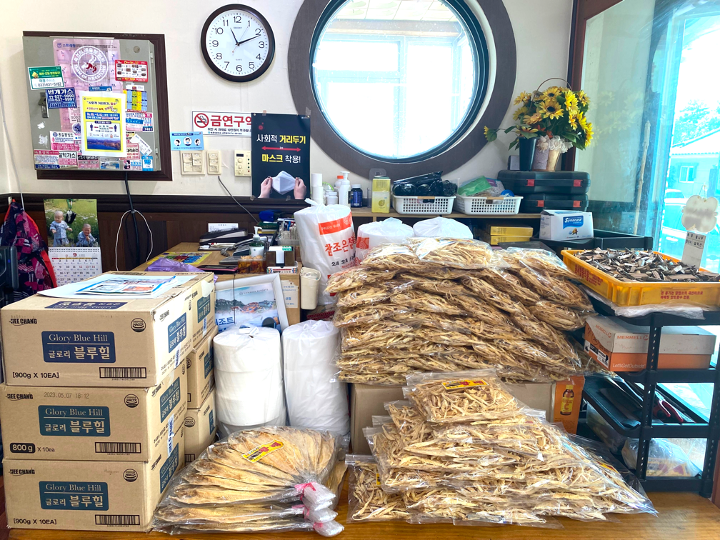 그렇게 식사를 하고 카운터쪽을 보니 특산품이 잔뜩 쌓여 있습니다.