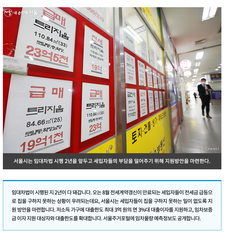 오는 8월 임대차 2법 시행 만 3년을 앞두고 2020년 '계약갱신요구권'과 '전월세 상한제'를 적용했던 세입자의 전세금 급등이 예상됨에 따라 서울시가 이에 따른 부담을 덜어준다고 하니 아래의 내용을 잘 읽어보시고 해당이 된다면 신청해 보시기 바랍니다.