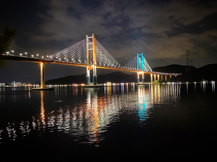 마창대교는 빛 색상이 여러가지 색으로 계속 변합니다. 이것도 담아 보았지요.