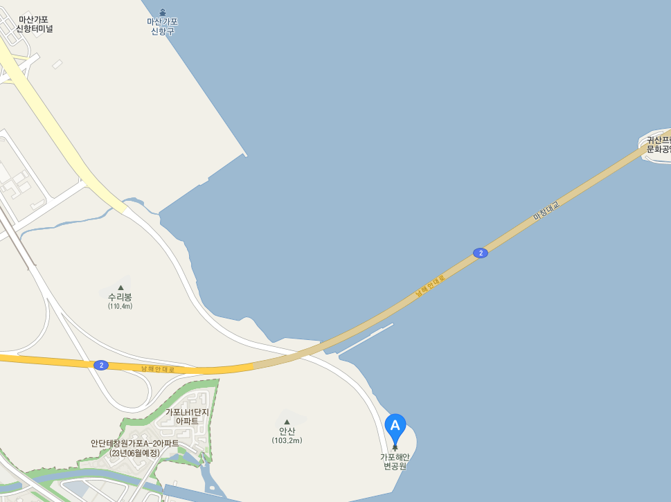 주소 '창원시 마산합포구 가포동 산 82' 가포해안변공원