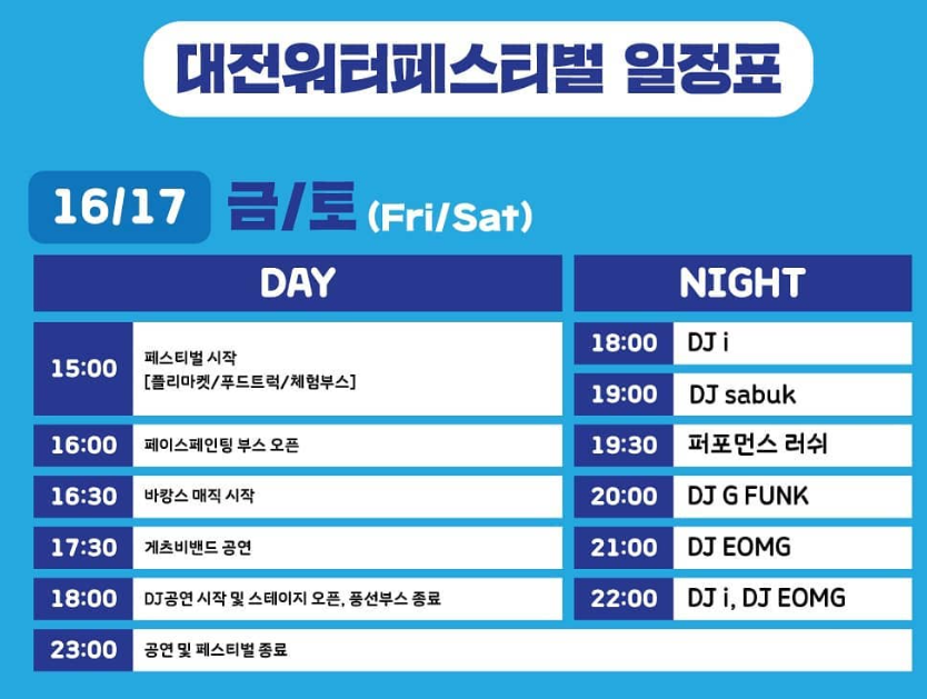 #가볼만한곳 #대전가볼만한곳 #가볼만한축제 #대전축제 #대전워터페스티벌 #2022DMF #대전물총놀이 #대전DJ공연 #푸드트럭 #불꽃놀이 #추천축제 #여름축제 #EDM파티 #프리마켓 #워터EDM파티 #마술쇼 #버스킹 #가족여행 #데이트 #커플여행 #아이와함께 #관광지 #오빠랑대전여행 #오빠랑대전워퍼페스티벌 #대전엑스포다리 #추천여행지 #오빠랑가볼만한곳