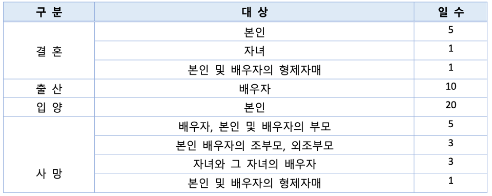 [법률/기업] 경조사 휴가일수