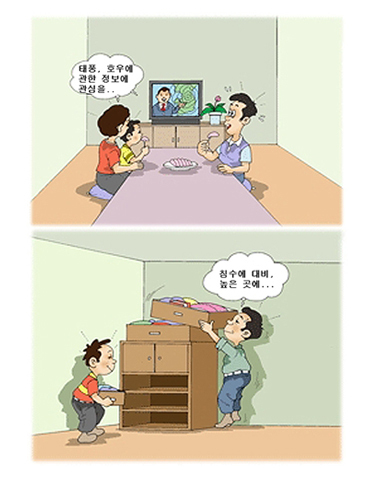 - 침수나 산사태 위험지역 주민은 대피장소와 비상연락방법을 미리 알아둡시다.