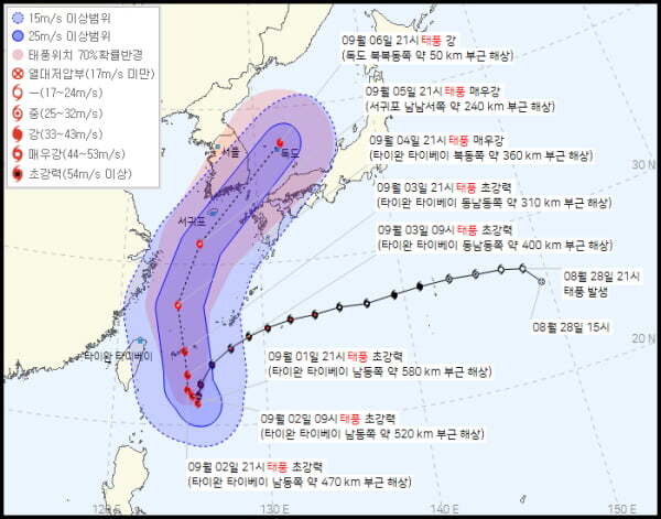 ‘초강력 태풍’ 힌남노 한반도 온다, 태풍예상경로는?