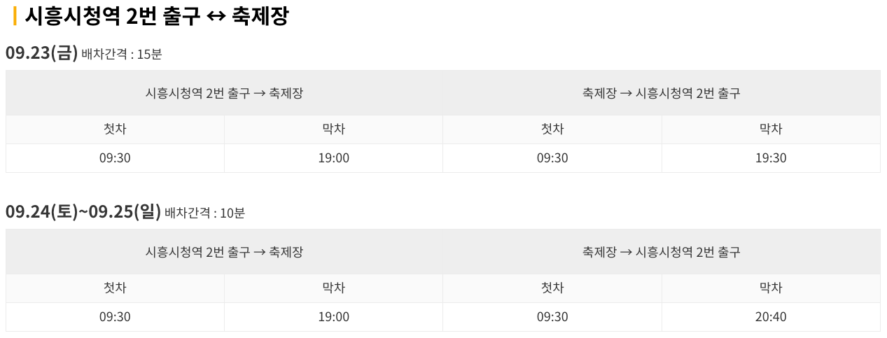 축제의 상세한 일정정보는 다음 페이지에서 확인하세요.