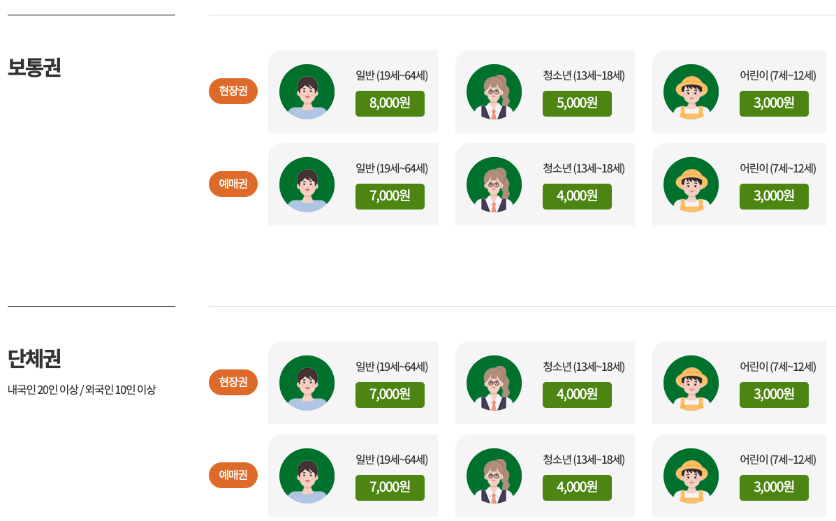 이용요금 : 일반-8,000원 / 청소년-5,000원 / 어린이-3,000원