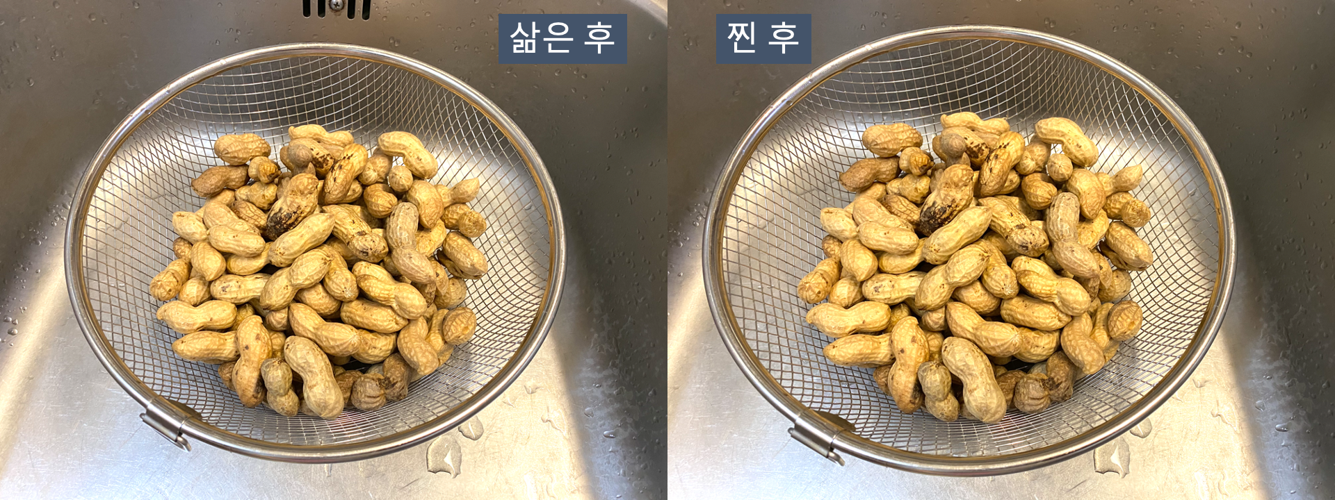 생땅콩을 저희가 먹으 만큼만 구해서 드디어 반은 삶고 반은 찜해서 먹게 되었습니다.