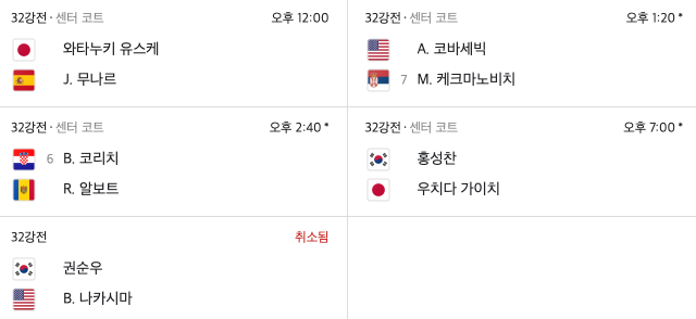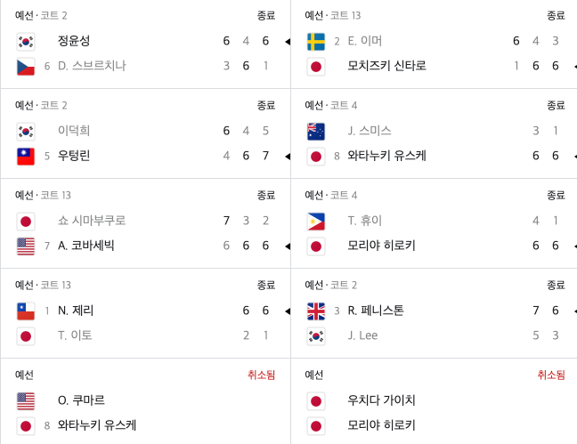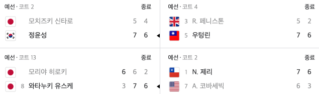 9월 27일(화)에는 권순우 선수와 정윤성 선수가 경기를 갖네요. 한국선수들끼리 경기이군요 ^^