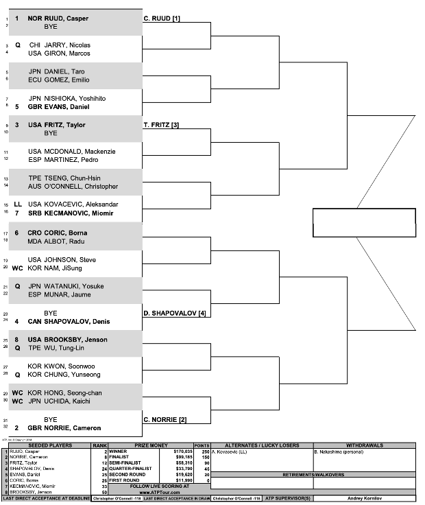 이번 대회에는 US오픈 남자 단식 준우승을 차지한 카스페르 루드(노르웨이·2위), 캐머런 노리(영국·8위), 테일러 프리츠(미국·12위), 데니스 샤포발로프(캐나다·25위) 등이 출전할 예정입니다. 프란시스 티아포(미국·19위) 선수도 아쉽게 출전하지 않네요.