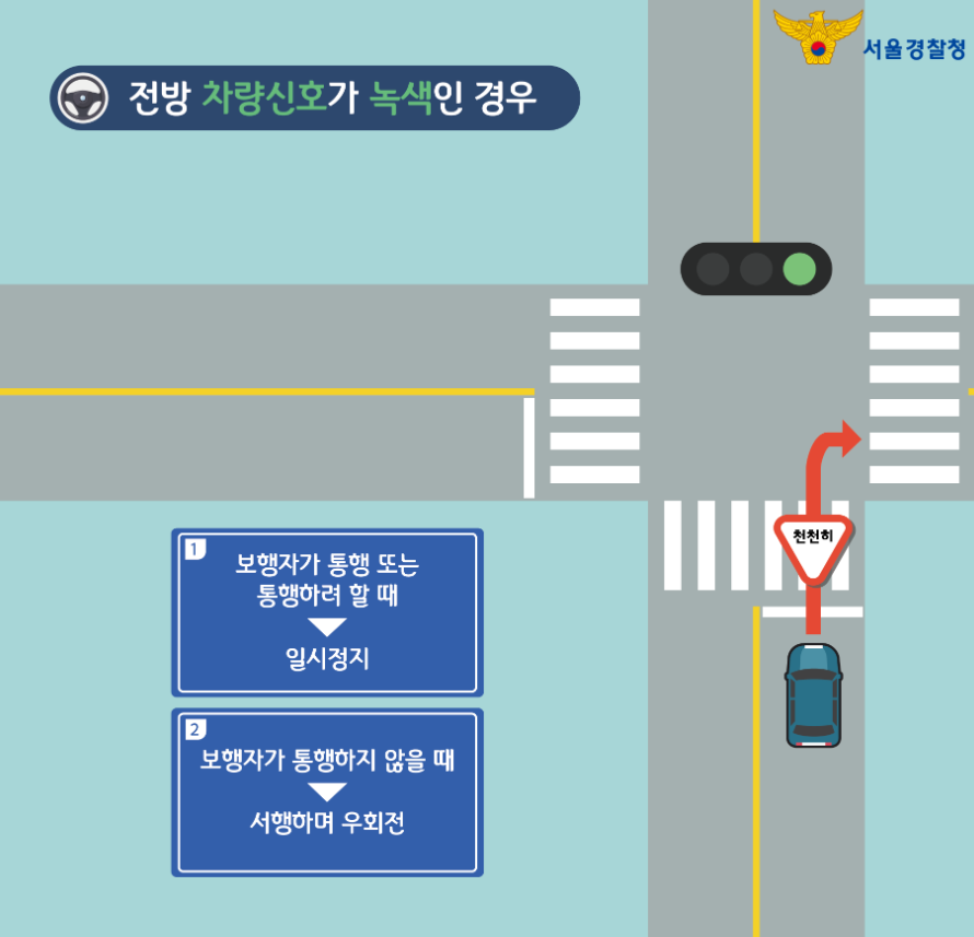 전방 차량신호가 녹색인 경우에 교차로 우회전 방법은