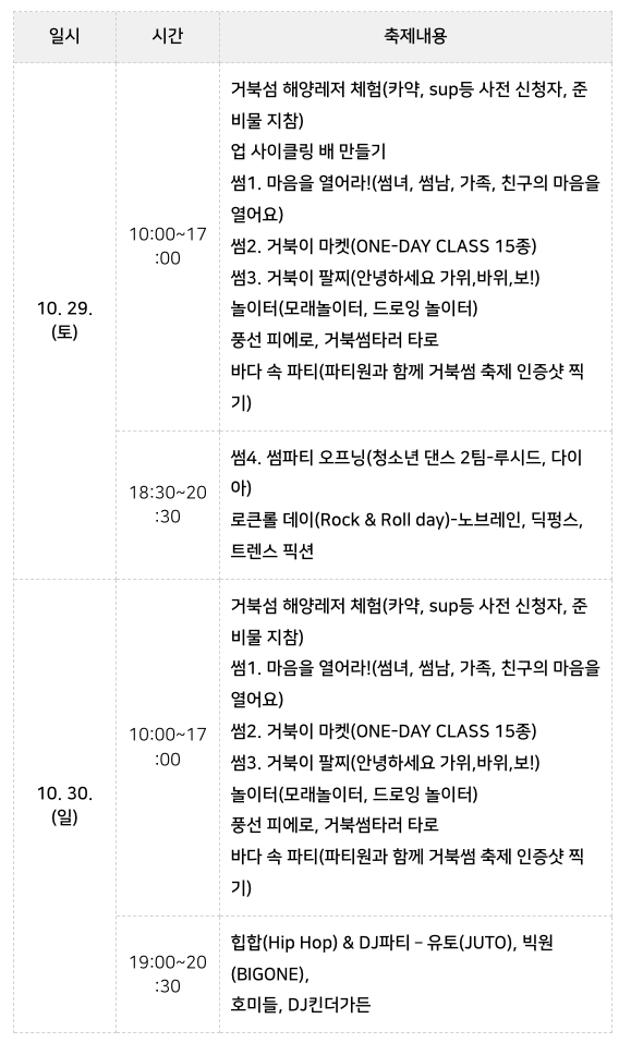 거북섬에서 올 해부터 본격적으로 축제와 이벤트를 진행하는 것 같습니다.