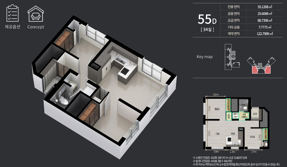 전용면적 55D, 계약면적 122 (계약 37평형)