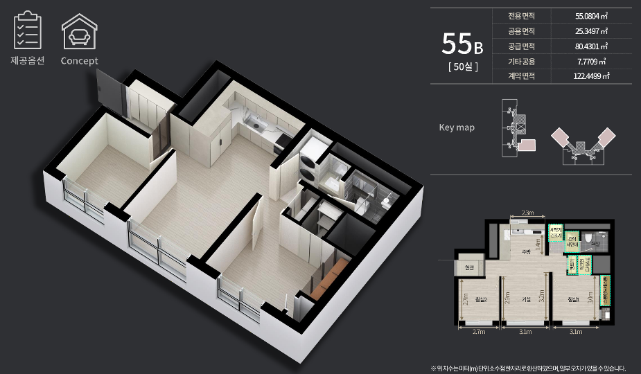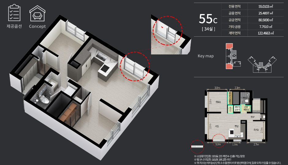전용면적 55C, 계약면적 122 (계약 37평형)