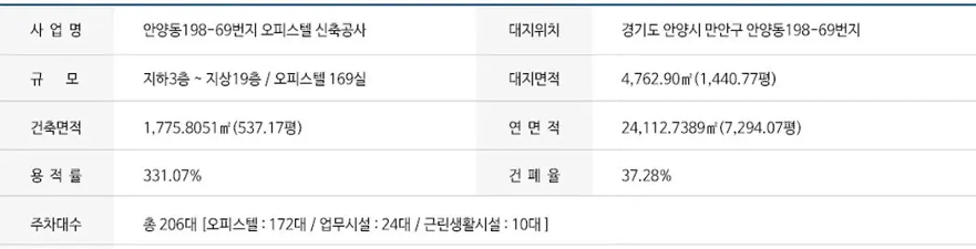 지하 3층~지상 19층 2개동, 전용 55㎡A,B,C,D 4개 타입, 169호실 규모