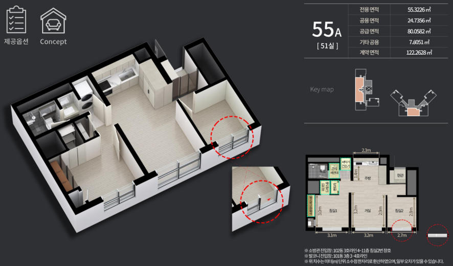 전용면적 55A, 계약면적 122 (계약 37평형)