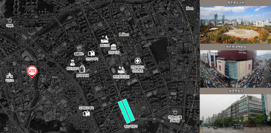덕천초, 평촌학원가, 이마트, 롯데백화점, 안양시청, 평촌인프라