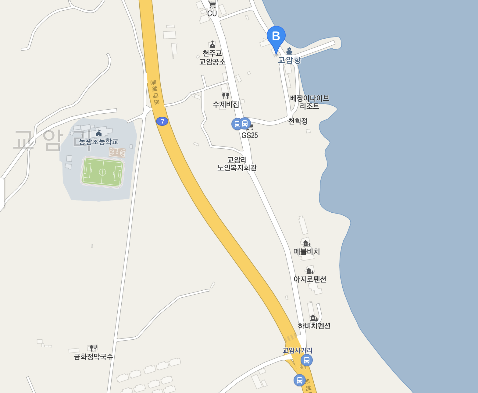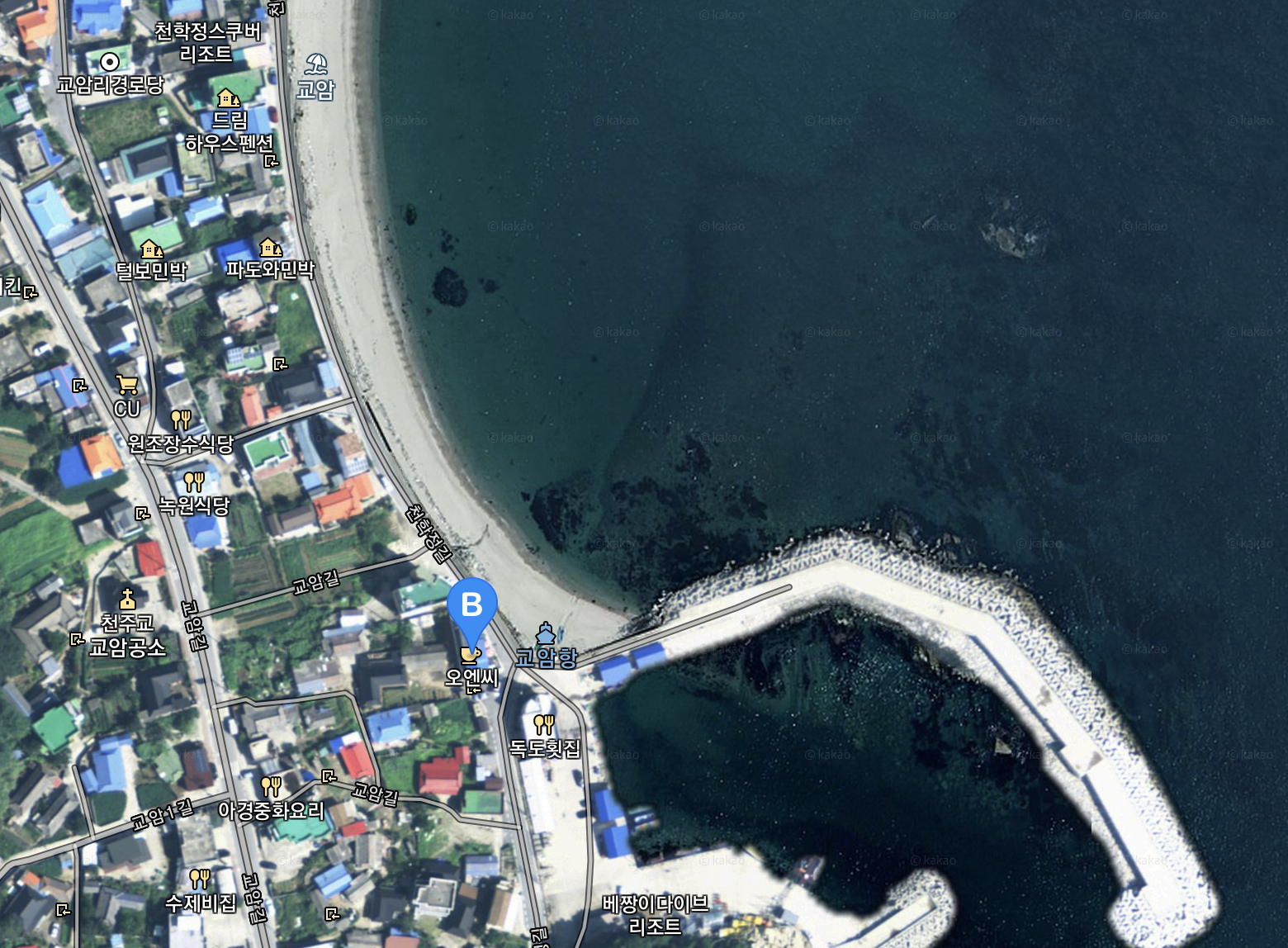교암리 해변과 교암항이 보이는 곳에 있는 오엔씨카페(ONC)를 찾아가볼 수 있는데요. 교암사거리에서 우측길로 들어오시면 맛집들이 있고 교암항이 보이는 곳에 ONC카페가 있습니다.